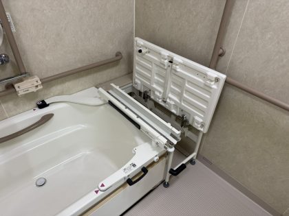 入浴リフト導入しました。 2026/02/16 ご入居者様が無理な姿勢をとることなく入浴ができるよう、個浴槽に入浴用のリフトを導入しました。 皆様にゆっくりと安心できる入浴時間をとってもらえるように支援させていただきます。 関連記事